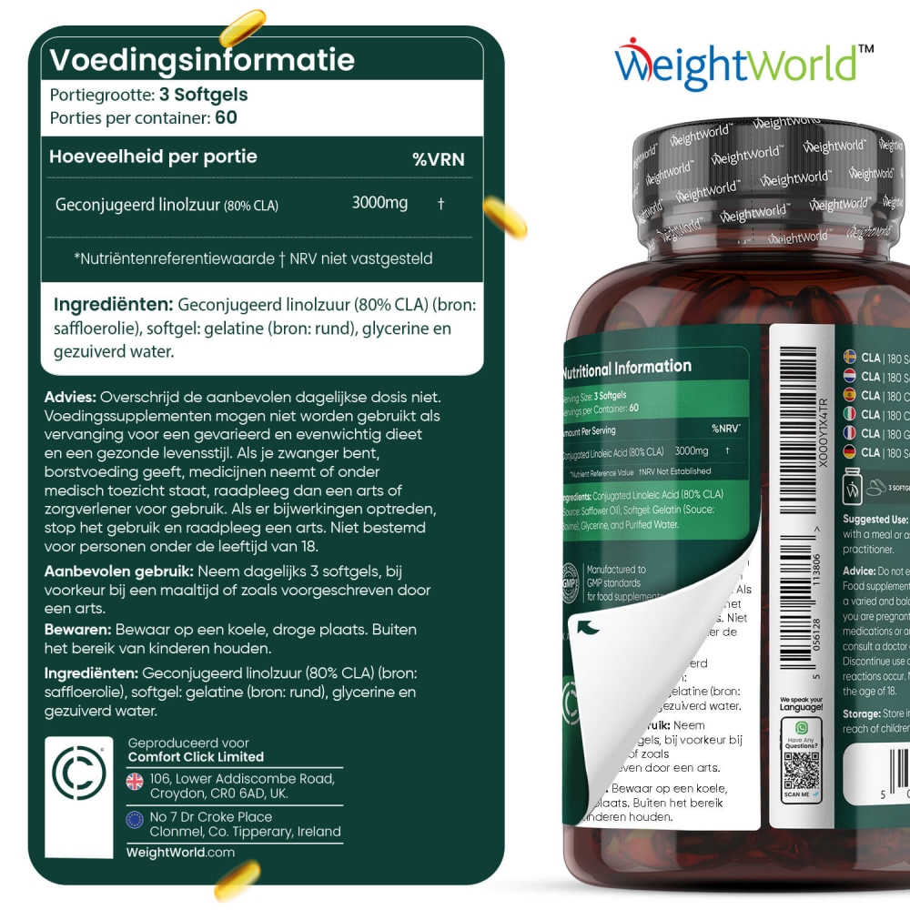 - Bevat 3000 mg CLA geconjugeerd linolzuur per portie