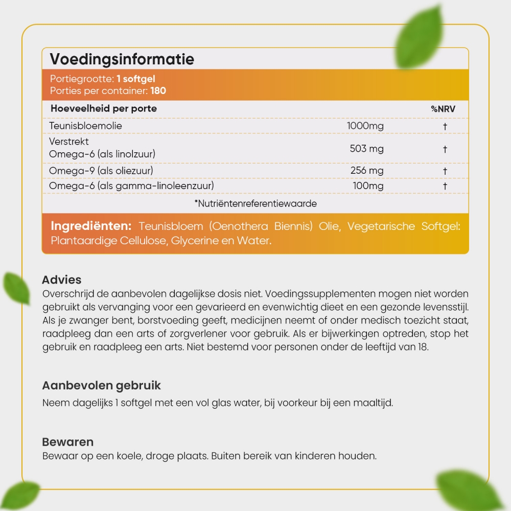 - Teunisbloem is een rijke bron van omega 6 en omega 9