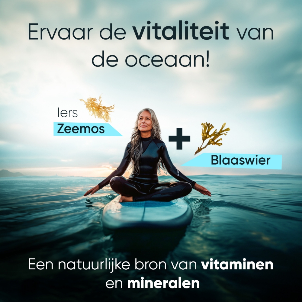 Naast Iers zeemos van de Chondrus Crispus plant bevat dit supplement ook bladderwreck, of blaaswier. Bladderwrack (Fucus vesiculosus) is een soort bruin zeewier dat veel voorkomt aan de kusten van de Atlantische Oceaan, de Noordzee en de Baltische Zee. Het staat ook wel bekend als fucus. Blaaswier heeft een typisch bruinachtige kleur en is herkenbaar aan de luchtbelletjes die zich in de bladeren bevinden. Deze luchtbelletjes helpen het zeewier drijvend te blijven. Bladderwrack bevat oplosbare vezels en is rijk aan mineralen (waaronder jodium, calcium, kalium, ijzer en magnesium) en vitaminen zoals vitamine C.