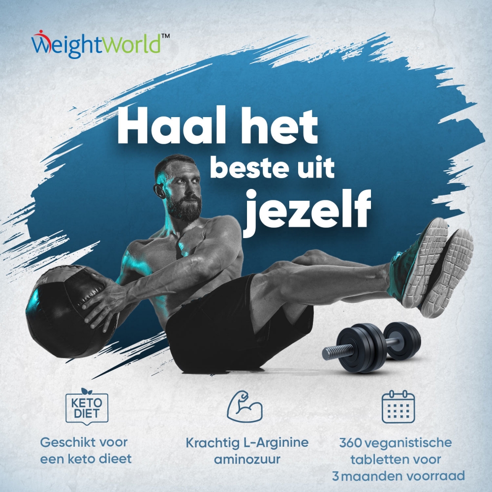 L-Arginine is een aminozuur, een van de bouwstenen van het aanmaken van eiwitten in het menselijk lichaam. L-Arginine is vooral populair onder sporters. Door dagelijks een tablet te nemen, biedt dit supplement een voorraad van 3 maanden.