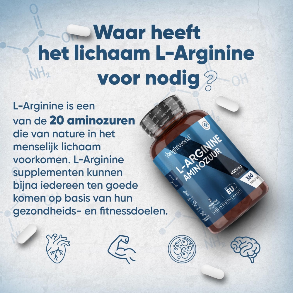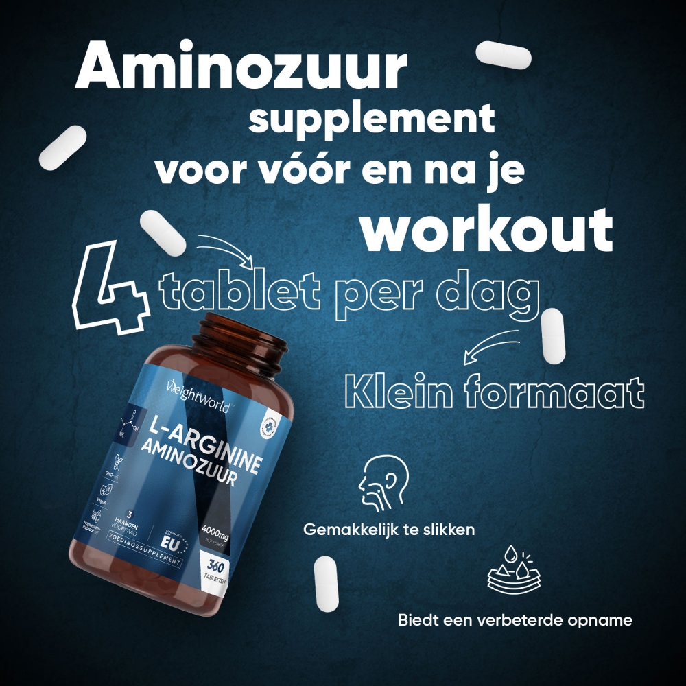 - Elke tablet bevat 4000 mg L-Arginine