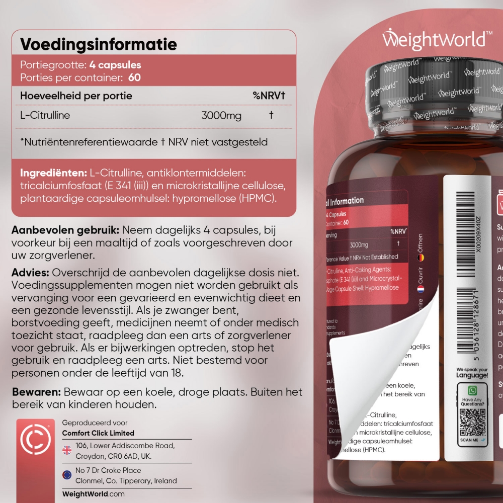 - Sterke dosering van 3000 mg L-citrulline per portie