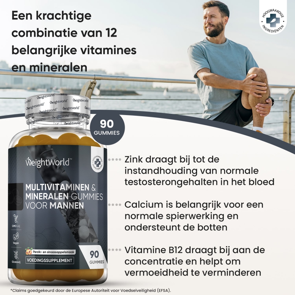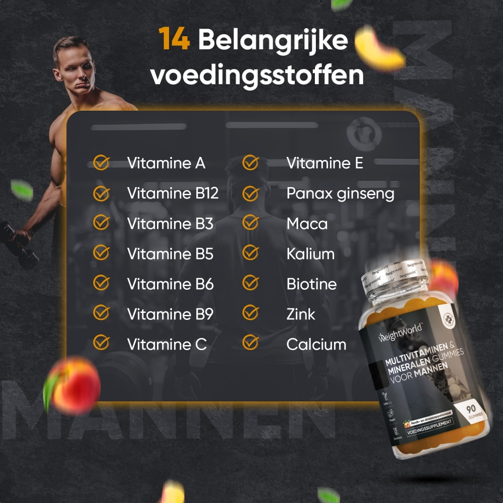 Deze gummies zijn samengesteld met verschillende vitamines en mineralen die zijn afgestemd op de behoeften van mannen, zoals: