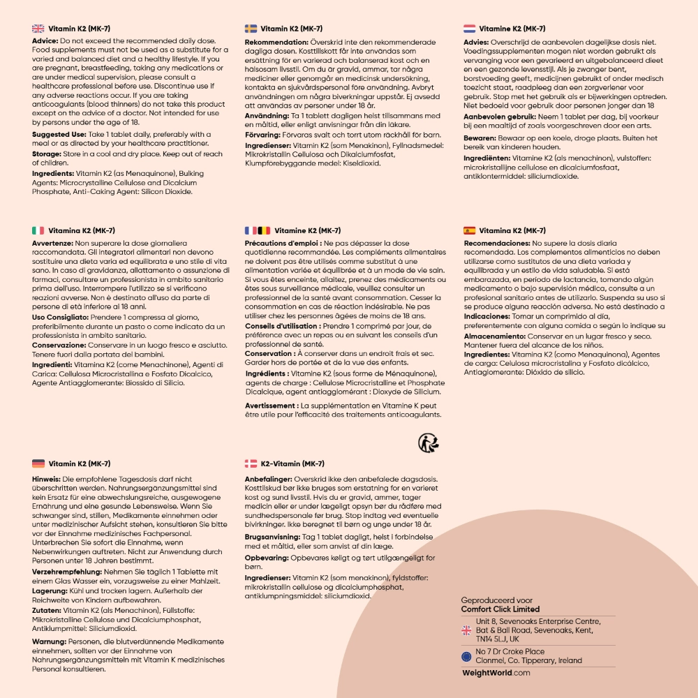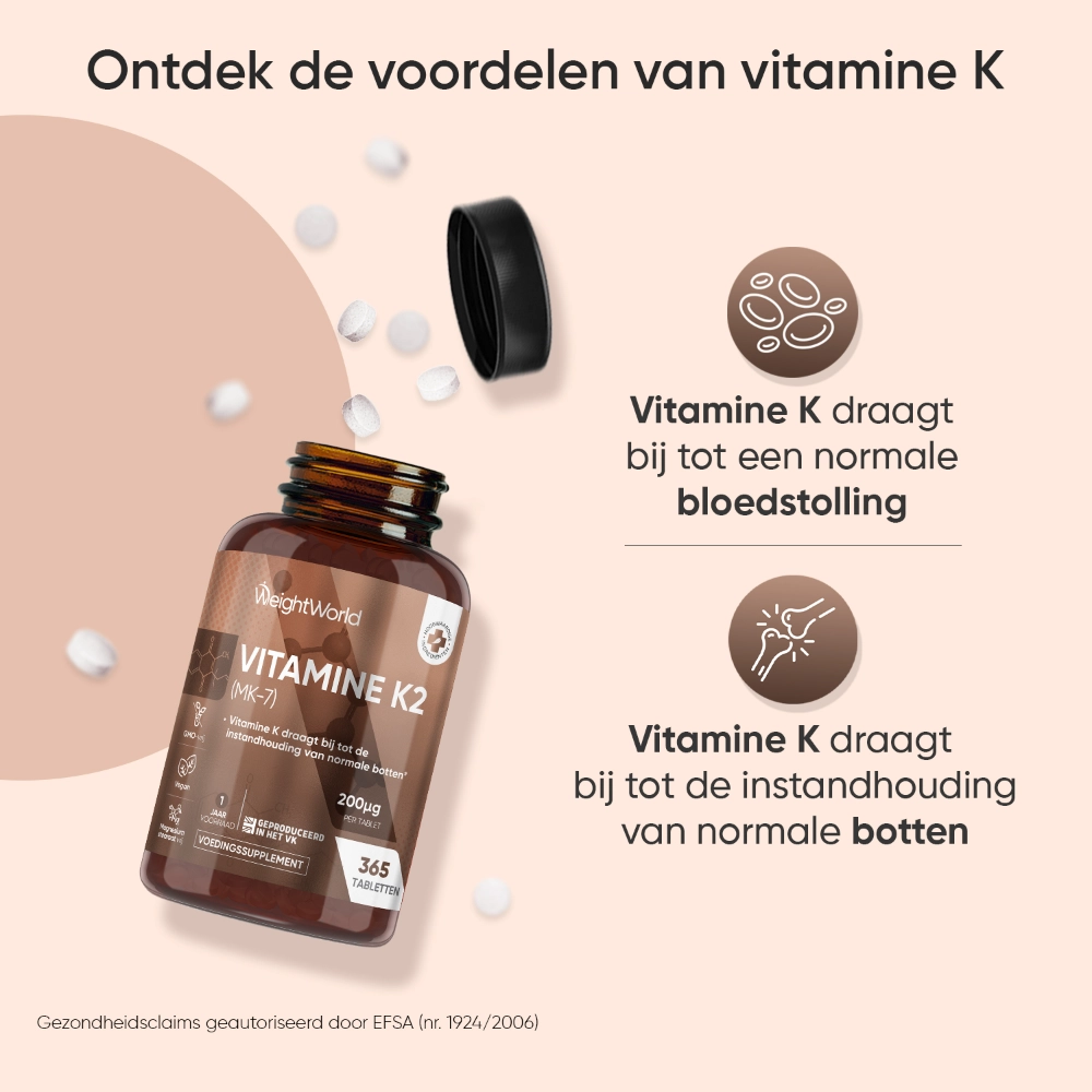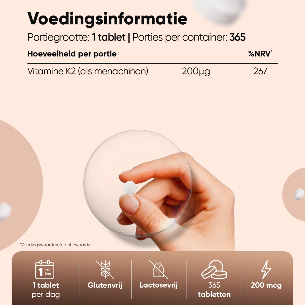 - 200 mcg (µg) hoogwaardige vitamine K2 (MK-7)